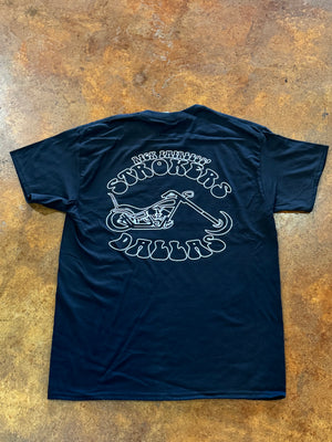 This custom Strokers Dallas black T-Shirt features a Rick's favorite new saying on the front of the shirt and a classic Strokers round logo on back.