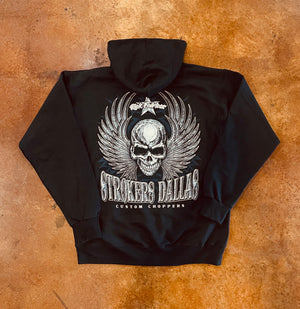 The updated version of the Strokers Dallas Skull Wings logo is one of our new favorites! This time we put it on a classic black pullover hoodie. Get 'em while they last!