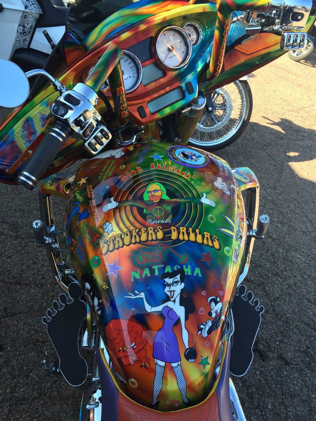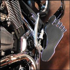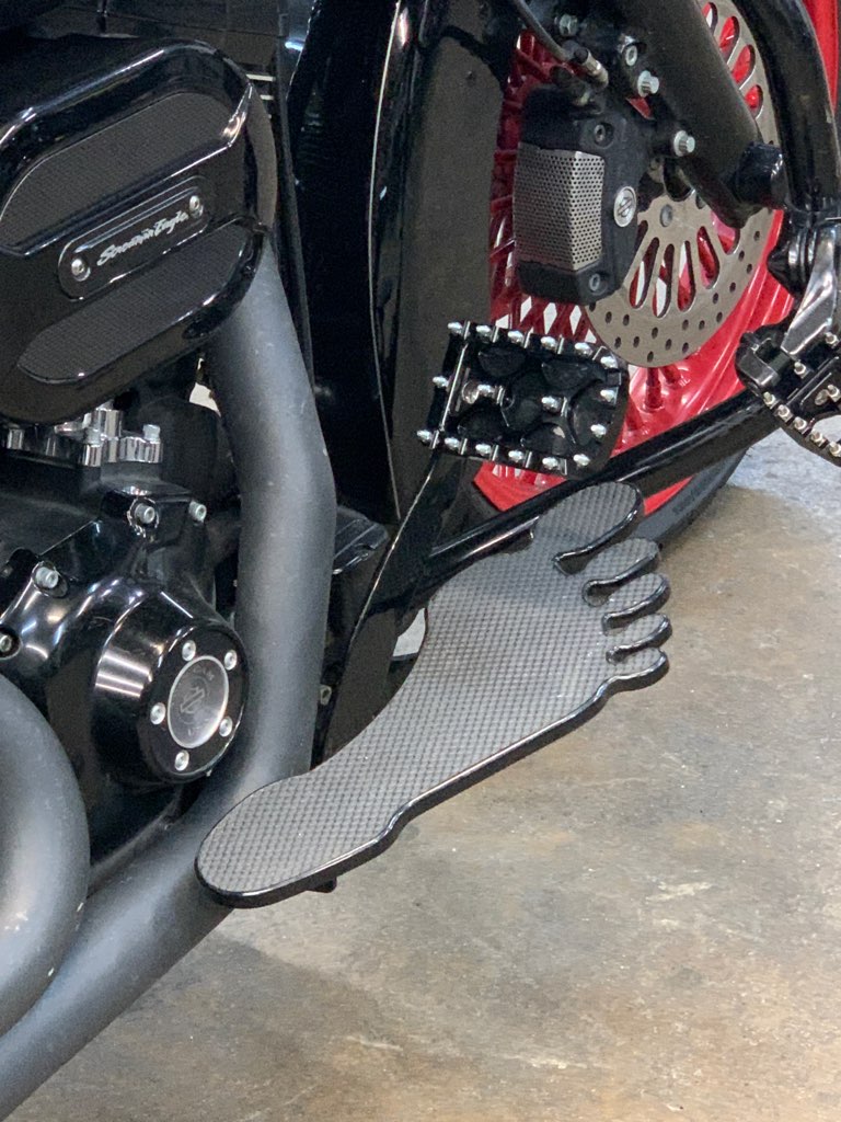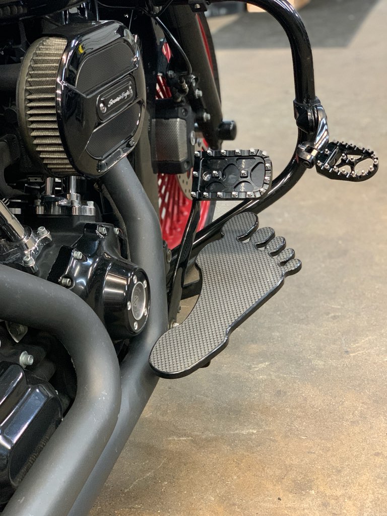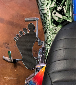 Get that old school cool look with custom Footboards from Rick Fairless. Super cool and groovy throwback look! Available for Harley Davidson in Chrome or Black. *Fits All Harley Davidson Baggers...
