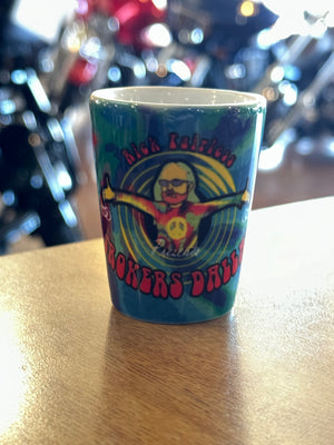 Get groovy with every pour! This psychedelic shot glass features a colorful tie-dye background and a bold caricature of Rick Fairless himself, arms wide open and ready to party. With “Strokers Dallas” loud and proud in red bubble letters, it’s the perfect addition to any biker bar collection, man cave, or souvenir stash.