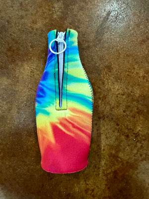 Available in can and bottle. Zipper located on the back of the bottle koozie.