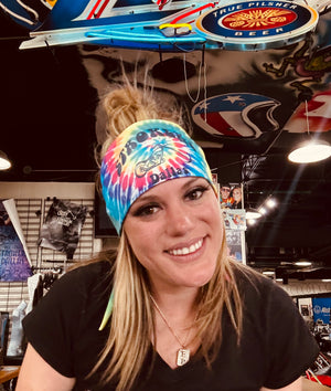 Sublimation colorful tie dye Strokers Dallas graphic. Wet / dry cooling material, wicks sweat and cools with evaporation MADE IN THE USA