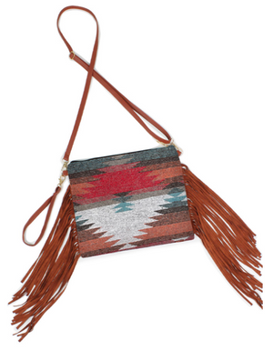 Western Crossbody Bag with Tassel fringe100% polyester10" x 9"